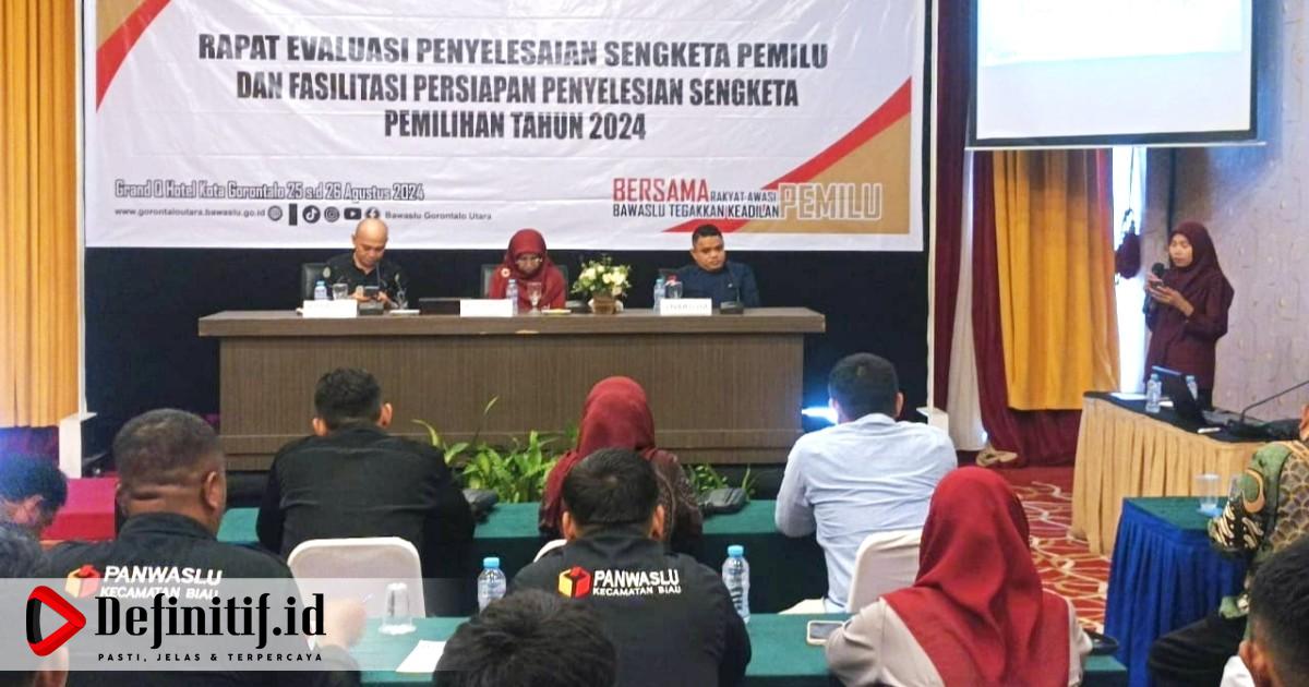 Definitif.id, Gorontalo Utara – Rapat evaluasi penyelesaian sengketa pemilu dan fasilitas persiapan penyelesaian sengketa pemilihan tahun 2024 telah dilaksanakan di Grand Q Hotel, Kota Gorontalo, pada 25-26 Agustus 2024. Kegiatan ini diadakan untuk mengantisipasi potensi sengketa pada tahapan penetapan daftar Calon Kepala DaerahGorontalo Utara (Gorut) tahun 2024.