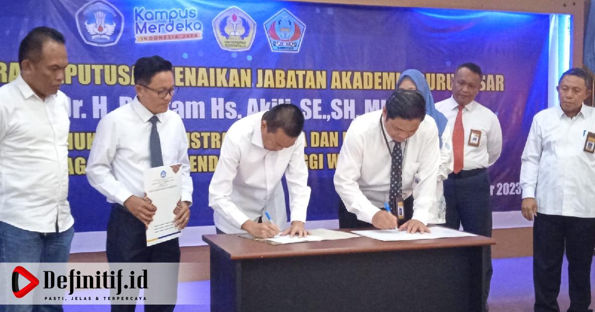 Definitif.id, Gorontalo – Resmi, Lembaga Layanan Pendidikan Tinggi (LLDIKTI) Wilayah XVI Gorontalo Suluttenggo menyerahkan Surat Keputusan Kenaikan Jabatan Akademik Guru Besar kepada Prof. Dr. Rustam Hs. Akili.,SE.,SH.,MH dalam bidang Ilmu Hukum Administrasi Negara dan Hukum Tata Negara, Senin (30/10/2023).