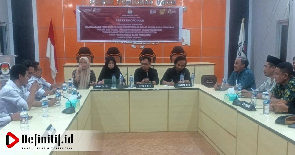 Definitif.id Gorontalo Utara – Badan Pengawas Pemilihan Umum (Bawaslu) Kabupaten Gorontalo Utara menghadiri rapat koordinasi penyamaan persepsi pelaksanaan pemungutan suara ulang (PSU) Pilkada 2024. Rapat digelar di Ruang Aula Kantor Komisi Pemilihan Umum Daerah (KPUD) Gorontalo Utara, Rabu (16/04/2025).