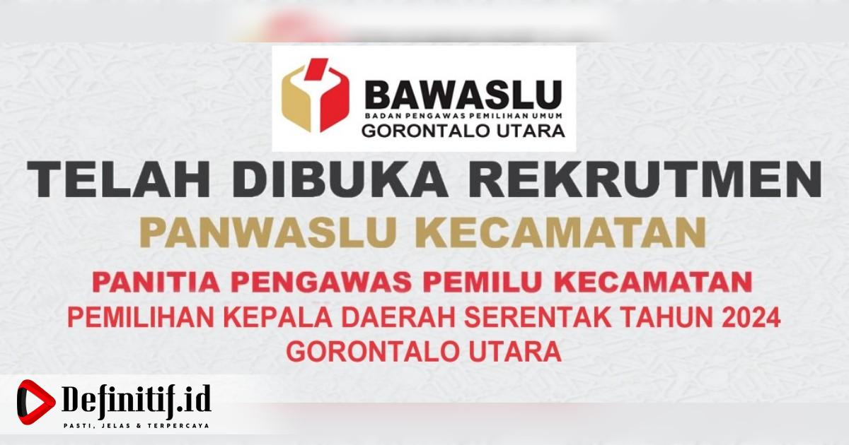 Definitif.id, Gorontalo Utara – Badan Pengawas Pemilihan Umum (Bawaslu) Kabupaten Gorontalo Utara (Gorut) melalui Kelompok Kerja (Pokja) Pembentukan Panwaslu Kecamatan, dalam surat pengumuman Nomor: 59/KA.00/K/04/2024, resmi membuka pendaftaran Panitia Pengawas Pemilihan Umum tingkat Kecamatan atau Panwaslu.