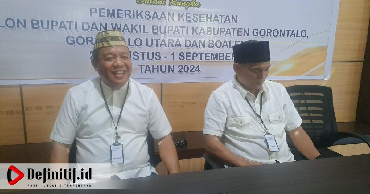 Definitif.id, Gorontalo – Pagi tadi, Kamis (29/08/2024), Pasangan Calon (Paslon) Bupati dan Wakil Bupati Kabupaten Gorontalo, Syam T Ase-Sohidin (SYAH) jalani tes kesehatan di Rumah Sakit MM Dunda Limboto.