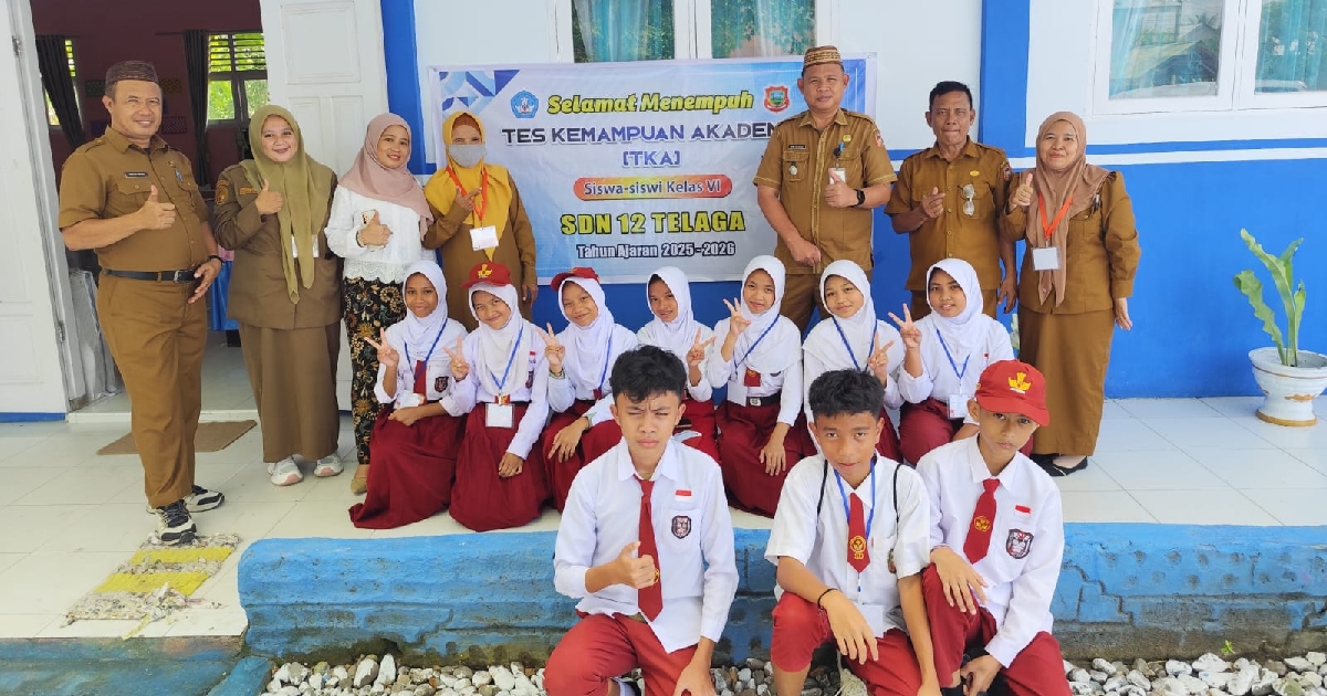 Definitif.id, Kabupaten Gorontalo – Puluhan siswa kelas VI SDN 12 Telaga berhasil menuntaskan pelaksanaan Tes Kompetensi Akademik (TKA) meski menghadapi keterbatasan jaringan internet di wilayah sekolah mereka. Ujian berlangsung selama dua hari, 20–21 April 2026, dengan memanfaatkan fasilitas di SDN 10 Telaga yang memiliki akses jaringan lebih memadai.