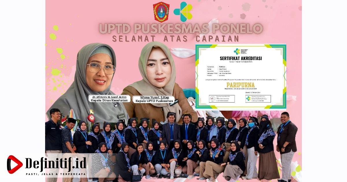 Definitifi.id, Gorontalo Utara – Puskesmas Ponelo, yang terletak di Kecamatan Ponelo, Gorontalo Utara, berhasil meraih predikat akreditasi paripurna di bawah kepemimpinan Wisna T. Yusuf, S.Kep selaku Kepala Puskesmas.